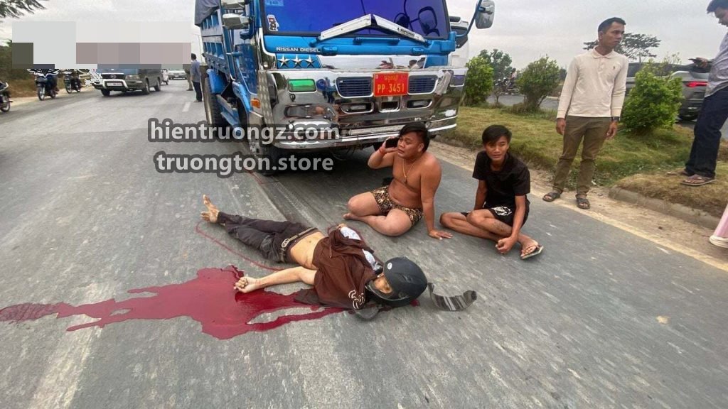 PHNOM PENH, Campuchia – 9/2/2026: Một vụ tai nạn giao thông đặc biệt nghiêm trọng xảy ra tại Phnom Penh khiến một người đàn ông tử vong tại chỗ sau khi va chạm mạnh với xe tải.