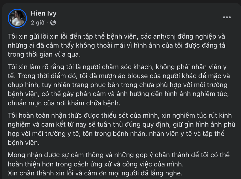 Cô gái đính chính trên trang cá nhân.